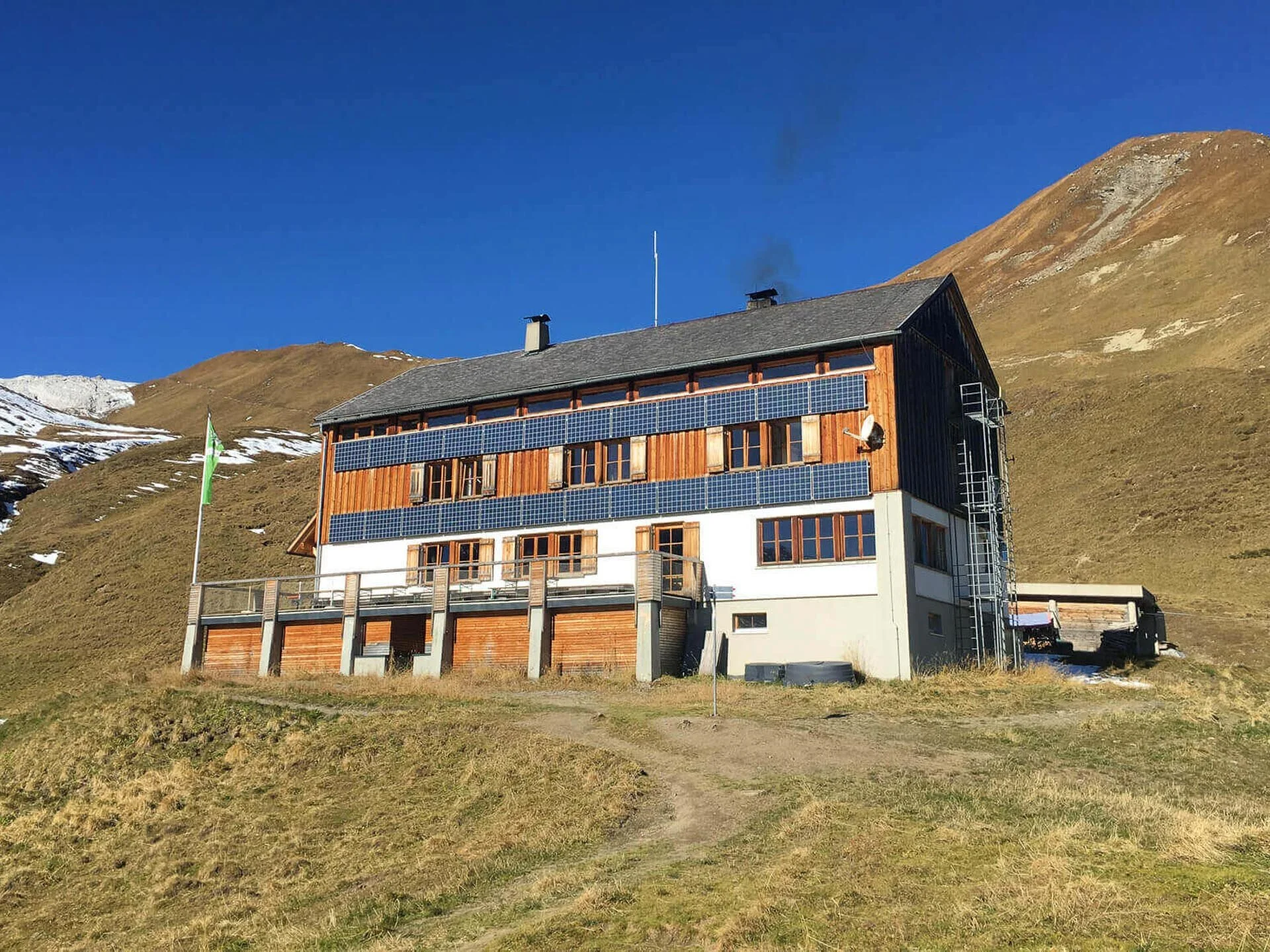 Zu Füßen der Lindauer Hütte liegt das malerische Gauertal, überragt wird sie vom grandiosen Felstheater der Sulzfluh, Drei Türme und Drusenfluh, geschmückt mit der hell leuchtenden Sporaplatte.